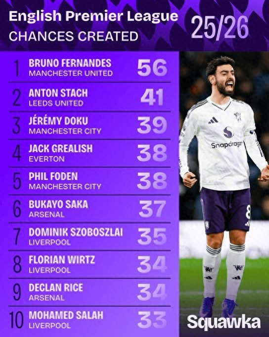 1月9日,着名数据机构Squawka发布本赛季英超球员创造契机统计榜单。这份遮掩全联赛中枢报复手的榜单中,曼联队长的阐扬呈现一边倒态势,以豪阔数据上风成为本赛季英超赛场的“契机制造机”。 榜单无缺排行及具体数据如下: 布鲁诺·费尔南德斯(曼联):56次 安东·斯塔赫(利兹联):41次 杰雷米·多库(曼城):39次 杰克·格里利什(埃弗顿):38次 菲尔·福登(曼城):38次 布卡约·萨卡(阿森纳):37次 多米尼克·索博斯洛伊(利物浦):35次 弗洛里安·维尔茨(利物浦):34次 德克兰·赖斯(阿森纳):34次 穆罕默德·萨拉赫(利物浦):33次 56次创造契机的数字,让曼联队长与其他球员拉开显著差距。排行第二的利兹联球员斯塔赫仅有41次,比前者少了15次。这么的差距在英超顶级球员的竞争中极为萧索,彰显出其在难题组织端的超强总揽力。 动作非权门球队的代表,利兹联的斯塔赫能置身次席颇具看点。41次创造契机的阐扬,不仅成为球队难题端的要紧相沿,也让他在一众权门球星中占据一隅之地,成为榜单中的最大惊喜之一。 曼城本赛季接续强势难题阐扬,阵中两名球员同期置身前五。多库以39次紧随斯塔赫之后,福登则与埃弗顿的格里利什同积38次,三东谈主变成缜密的第二梯队。蓝月亮双星的踏实输出,印证了球队难题体系的全面性。 利物浦则成为榜单中上榜东谈主数最多的球队。索博斯洛伊35次、维尔茨34次、萨拉赫33次,三名中枢球员均参加前十。赤军三叉戟的集体入围,展现了球队中前场多点着花的难题性情,三东谈主数据出入不大,变成里面良性竞争。 阿森纳一样有两名球员上榜。萨卡以37次位列第六,赖斯则与利物浦的维尔茨同积34次,分列第八位。枪手双核在创造契机端的踏实施展,成为球队冲击好获利的要紧保险体育最新信息,年青新星与中场铁闸的搭配诟谇分明。 |