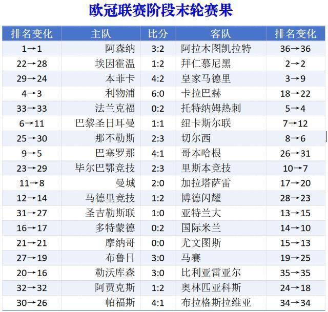 在前8名纵贯1/8决赛、9-24名晋级附加赛的赛制下,传统朱门与旧年雷同沿路存活,何况愈加莫得悬念。旧年,曼城和巴黎圣日耳曼在收官战前,齐濒临掉出前24被绝对淘汰的可能性。而本赛季,传统朱门在末轮前,排行最低的尤文图斯也排在第15名,已司表面上确保附加赛经历,第16名多特蒙德出局的表面可能性也十足不存在实验道理。因此,悬念基本聚集于纵贯16强经历的争夺。